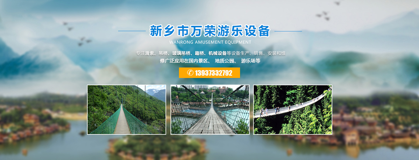 歡迎進入新鄉(xiāng)市萬榮機械有限公司官網(wǎng)!關鍵詞:玻璃水滑廠家,吊橋廠家, 景區(qū)吊橋價格, 滑索廠家, 游樂吊橋廠家, 玻璃吊橋, 防腐木吊橋廠商 ,景區(qū)吊橋, 滑索設備, 吊橋生產(chǎn)廠家, 吊橋多少錢, 木板吊橋, 吊橋施工廠家